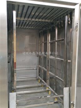 全自動觸摸屏蒸熏爐發煙系統 外置式木粒、木屑發煙系統,不僅使產品產生果木香氣,而且可以使 產品熏成由淺入深的金黃色。烘干機分體式糖爐發煙系統,可熏制傳統的中式產品,產生特有的糖熏味道,并且顏色可以控制,zui深可以成為棗紅色。蒸熏箱兩種發 煙系統同時使用能產生獨特煙熏香氣和顏色。煙熏爐加熱方式采用外接蒸汽加熱或電加熱方式,配備高效的在線清洗系統。門鎖和門合頁及密封條設計獨特,密封嚴 密,操作方便。生熟區門互鎖,區域隔離,符合HACCP要求。